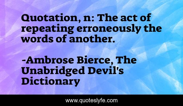 "Ambrose Bierce, The Unabridged Devil's Dictionary Quotes." Quoteslyfe.com, 2025. Fri. 05 Dec. 2025. <https://www.quoteslyfe.com/quote/Quotation-n-The-act-of-repeating-erroneously-5610>.