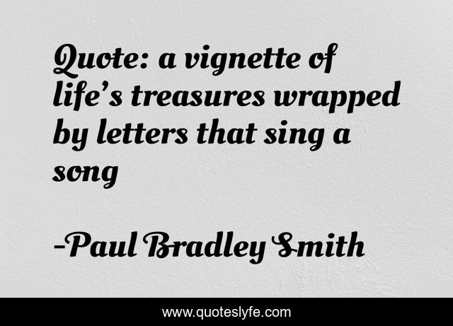 This page presents the quote "Quote: a vignette of life’s treasures wrapped by letters that sing a song". Author of this quote is Paul Bradley Smith. This quote is about quote, life, treasure, quotes,.
