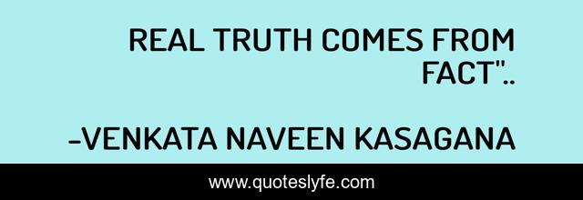 This page presents the quote "REAL TRUTH COMES FROM FACT"..". Author of this quote is VENKATA NAVEEN KASAGANA. This quote is about fact, truth, naveen,.