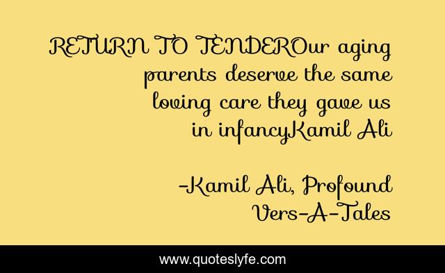 "Kamil Ali, Profound Vers-A-Tales Quotes." Quoteslyfe.com, 2025. Mon. 08 Dec. 2025. <https://www.quoteslyfe.com/quote/RETURN-TO-TENDEROur-aging-parents-deserve-the-212084>.