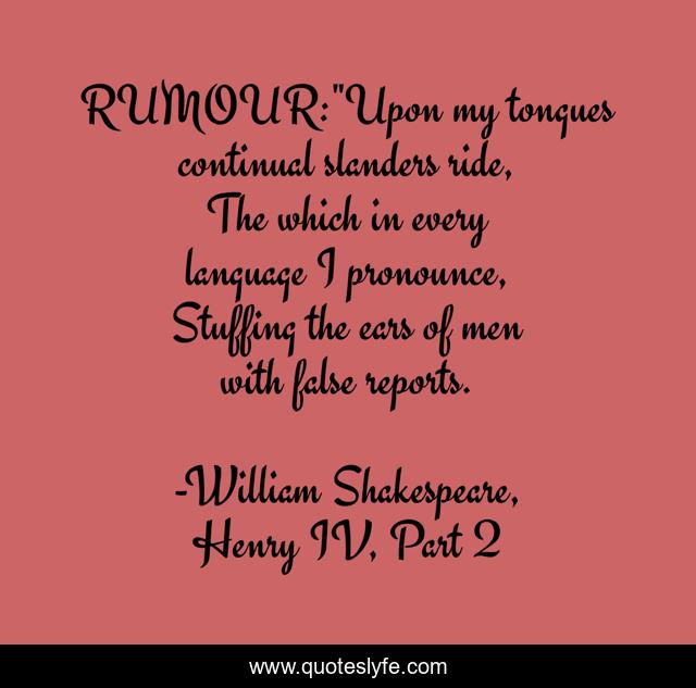 "William Shakespeare, Henry IV, Part 2 Quotes." Quoteslyfe.com, 2025. Fri. 05 Dec. 2025. <https://www.quoteslyfe.com/quote/RUMOUR-Upon-my-tongues-continual-slanders-ride-281227>.