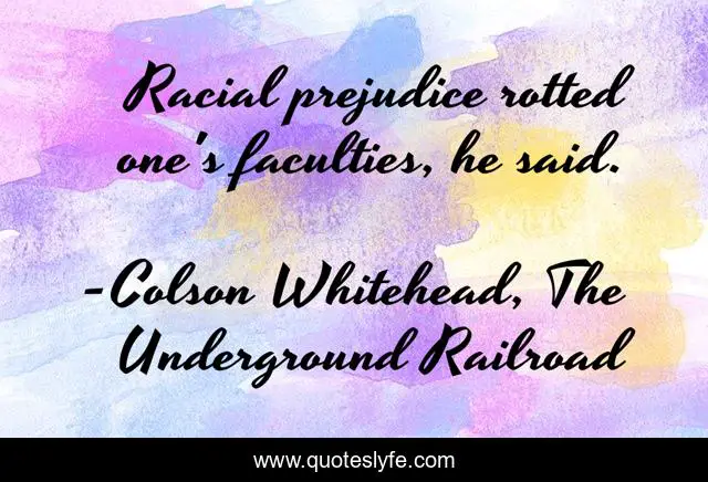 "Colson Whitehead, The Underground Railroad Quotes." Quoteslyfe.com, 2025. Mon. 08 Dec. 2025. <https://www.quoteslyfe.com/quote/Racial-prejudice-rotted-one-s-faculties-he-241481>.