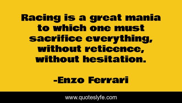 This page presents the quote "Racing is a great mania to which one must sacrifice everything, without reticence, without hesitation.". Author of this quote is Enzo Ferrari. This quote is about sacrifice, racing,.