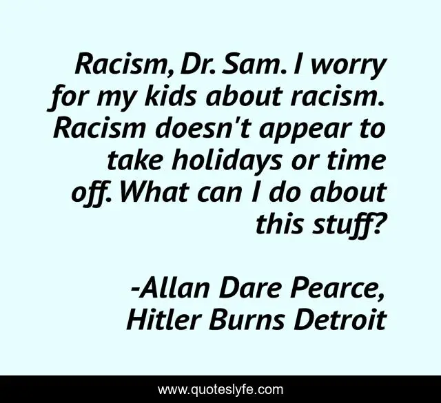 "Allan Dare Pearce, Hitler Burns Detroit Quotes." Quoteslyfe.com, 2025. Fri. 05 Dec. 2025. <https://www.quoteslyfe.com/quote/Racism-Dr-Sam-I-worry-for-my-99968>.