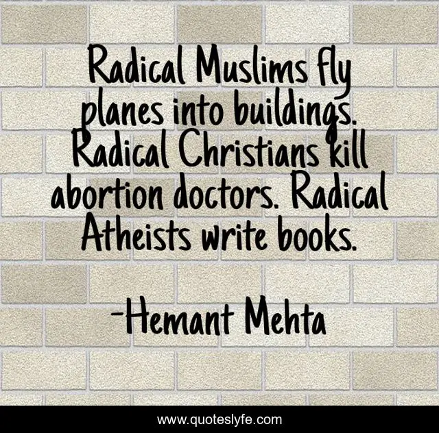 "Hemant Mehta Quotes." Quoteslyfe.com, 2025. Mon. 08 Dec. 2025. <https://www.quoteslyfe.com/quote/Radical-Muslims-fly-planes-into-buildings-Radical-176037>.