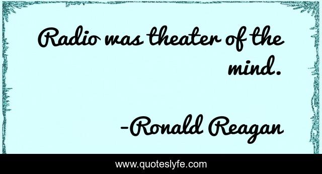 This page presents the quote "Radio was theater of the mind.". Author of this quote is Ronald Reagan. This quote is about imagination, media, leadership, vision, communication,.