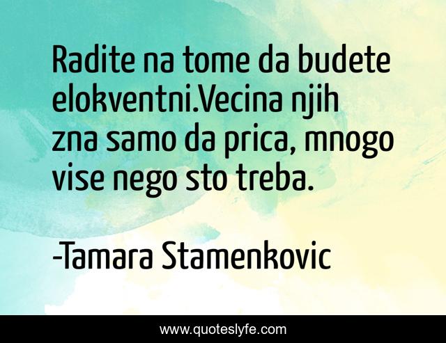 "Tamara Stamenkovic Quotes." Quoteslyfe.com, 2025. Fri. 05 Dec. 2025. <https://www.quoteslyfe.com/quote/Radite-na-tome-da-budete-elokventni-Vecina-23880>.