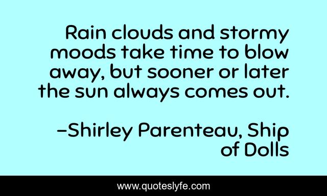 "Shirley Parenteau, Ship of Dolls Quotes." Quoteslyfe.com, 2025. Fri. 05 Dec. 2025. <https://www.quoteslyfe.com/quote/Rain-clouds-and-stormy-moods-take-time-147128>.