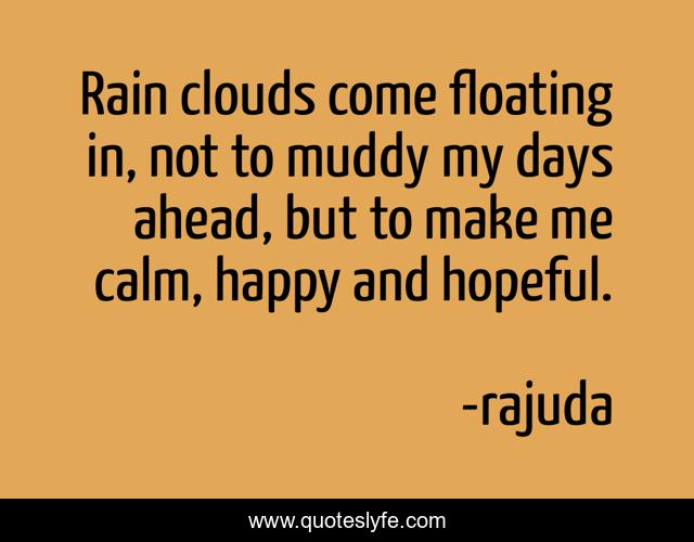 This page presents the quote "Rain clouds come floating in, not to muddy my days ahead, but to make me calm, happy and hopeful.". Author of this quote is rajuda. This quote is about monsoon, rains, rain,.