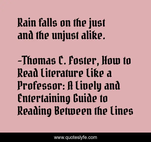 "Thomas C. Foster, How to Read Literature Like a Professor: A Lively and Entertaining Guide to Reading Between the Lines Quotes." Quoteslyfe.com, 2025. Mon. 08 Dec. 2025. <https://www.quoteslyfe.com/quote/Rain-falls-on-the-just-and-the-186682>.