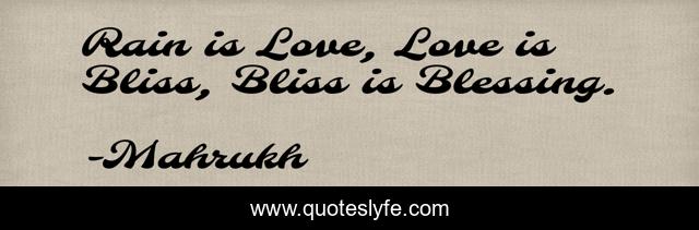 "Mahrukh Quotes." Quoteslyfe.com, 2025. Sat. 06 Dec. 2025. <https://www.quoteslyfe.com/quote/Rain-is-Love-Love-is-Bliss-Bliss-211449>.