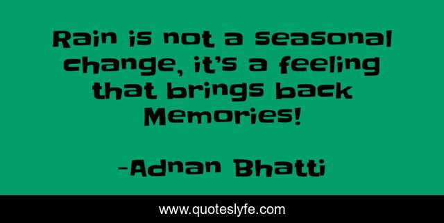 This page presents the quote "Rain is not a seasonal change, it’s a feeling that brings back Memories!". Author of this quote is Adnan Bhatti. This quote is about beautiful, memories, rain,.