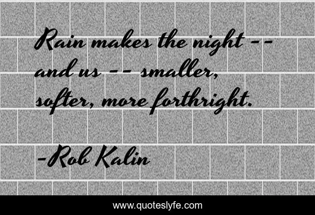 "Rob Kalin Quotes." Quoteslyfe.com, 2025. Fri. 05 Dec. 2025. <https://www.quoteslyfe.com/quote/Rain-makes-the-night-and-us-smaller-234690>.