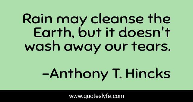 This page presents the quote "Rain may cleanse the Earth, but it doesn't wash away our tears.". Author of this quote is Anthony T. Hincks. This quote is about raining, philosophy, may, the-earth, rain, water, wash, tears, wash-away,.