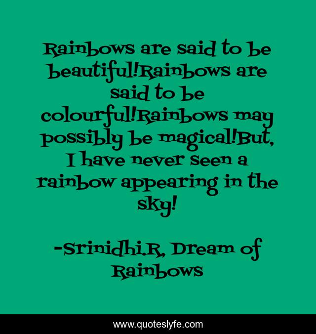 "Srinidhi.R, Dream of Rainbows Quotes." Quoteslyfe.com, 2025. Sat. 06 Dec. 2025. <https://www.quoteslyfe.com/quote/Rainbows-are-said-to-be-beautiful-Rainbows-90808>.