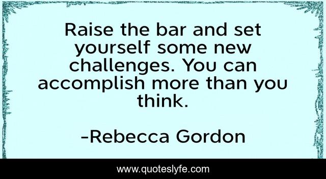 This page presents the quote "Raise the bar and set yourself some new challenges. You can accomplish more than you think.". Author of this quote is Rebecca Gordon. This quote is about win, challenge, accomplish, actions, succeed,.