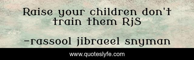 This page presents the quote "Raise your children don't train them RjS". Author of this quote is rassool jibraeel snyman. This quote is about philosophy-of-mind, philosophy-of-life, philosophy, sense, wisdom,.