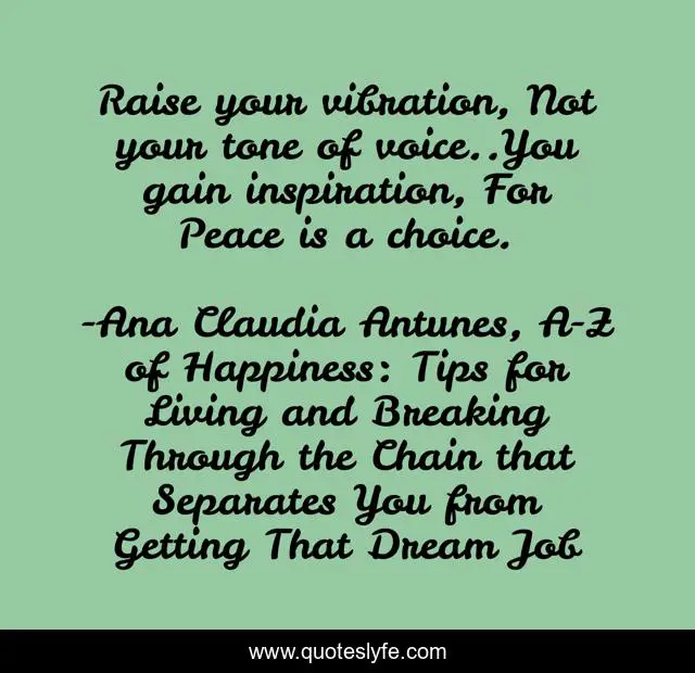"Ana Claudia Antunes, A-Z of Happiness: Tips for Living and Breaking Through the Chain that Separates You from Getting That Dream Job Quotes." Quoteslyfe.com, 2025. Mon. 17 Nov. 2025. <https://www.quoteslyfe.com/quote/Raise-your-vibration-Not-your-tone-of-29506>.