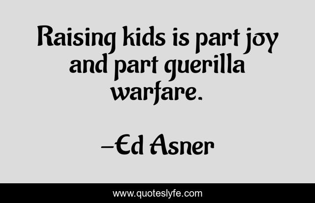 This page presents the quote "Raising kids is part joy and part guerilla warfare.". Author of this quote is Ed Asner. This quote is about parenting, children,.