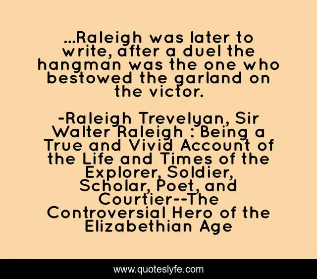"Raleigh Trevelyan, Sir Walter Raleigh : Being a True and Vivid Account of the Life and Times of the Explorer, Soldier, Scholar, Poet, and Courtier--The Controversial Hero of the Elizabethian Age Quotes." Quoteslyfe.com, 2025. Fri. 05 Dec. 2025. <https://www.quoteslyfe.com/quote/Raleigh-was-later-to-write-after-a-70368>.