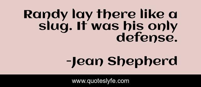 This page presents the quote "Randy lay there like a slug. It was his only defense.". Author of this quote is Jean Shepherd. This quote is about funny, humorist, humor, comedy,.