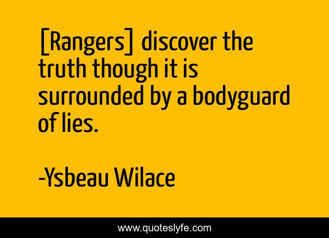 This page presents the quote "[Rangers] discover the truth though it is surrounded by a bodyguard of lies.". Author of this quote is Ysbeau Wilace. This quote is about lies, truth, flora-segunda,.