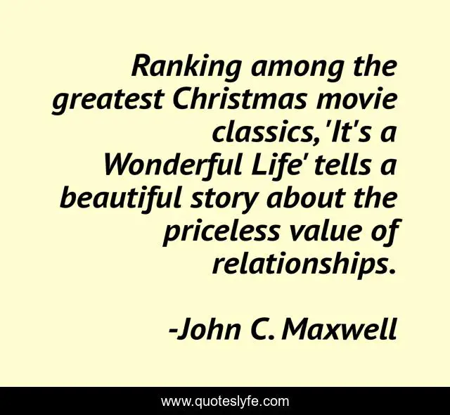 This page presents the quote "Ranking among the greatest Christmas movie classics, 'It's a Wonderful Life' tells a beautiful story about the priceless value of relationships.". Author of this quote is John C. Maxwell. This quote is about beautiful, life, value,.