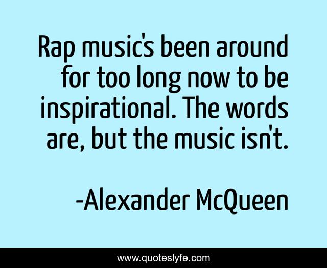 This page presents the quote "Rap music's been around for too long now to be inspirational. The words are, but the music isn't.". Author of this quote is Alexander McQueen. This quote is about music, words, long,.