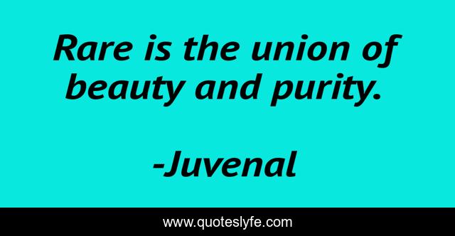 This page presents the quote "Rare is the union of beauty and purity.". Author of this quote is Juvenal. This quote is about union, rare, purity,.