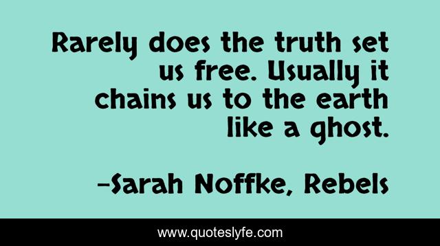 This page presents the quote "Rarely does the truth set us free. Usually it chains us to the earth like a ghost.". Author of this quote is Sarah Noffke, Rebels. This quote is about earth, chains, free, truth,.