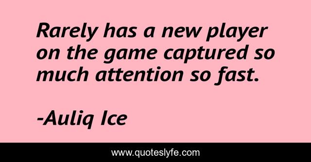 This page presents the quote "Rarely has a new player on the game captured so much attention so fast.". Author of this quote is Auliq Ice. This quote is about succes, confidence, hero, success, positive, motivational, inspiarational, sports, optimistic,.