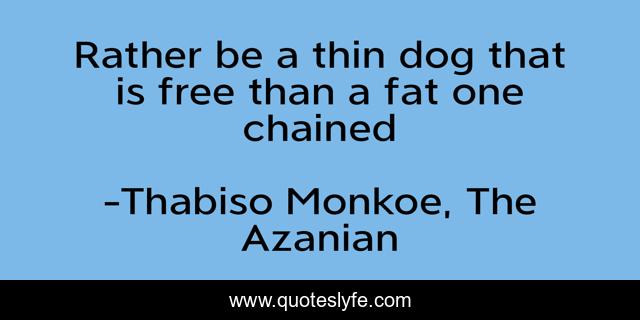 This page presents the quote "Rather be a thin dog that is free than a fat one chained". Author of this quote is Thabiso Monkoe, The Azanian. .