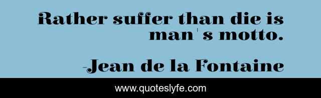 "Jean de la Fontaine Quotes." Quoteslyfe.com, 2025. Mon. 08 Dec. 2025. <https://www.quoteslyfe.com/quote/Rather-suffer-than-die-is-man-s-262906>.