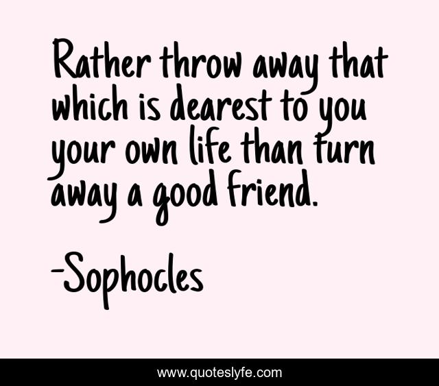 This page presents the quote "Rather throw away that which is dearest to you your own life than turn away a good friend.". Author of this quote is Sophocles. .