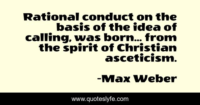 This page presents the quote "Rational conduct on the basis of the idea of calling, was born... from the spirit of Christian asceticism.". Author of this quote is Max Weber. This quote is about career, jobs, destiny,.