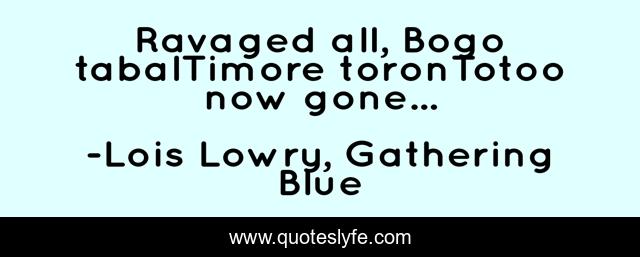 "Lois Lowry, Gathering Blue Quotes." Quoteslyfe.com, 2025. Fri. 05 Dec. 2025. <https://www.quoteslyfe.com/quote/Ravaged-all-Bogo-tabalTimore-toronTotoo-now-gone-122643>.