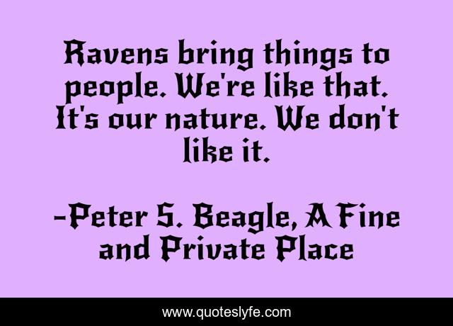 "Peter S. Beagle, A Fine and Private Place Quotes." Quoteslyfe.com, 2025. Mon. 08 Dec. 2025. <https://www.quoteslyfe.com/quote/Ravens-bring-things-to-people-We-re-136215>.