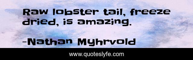 "Nathan Myhrvold Quotes." Quoteslyfe.com, 2025. Tue. 09 Dec. 2025. <https://www.quoteslyfe.com/quote/Raw-lobster-tail-freeze-dried-is-amazing-304734>.