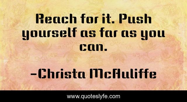 This page presents the quote "Reach for it. Push yourself as far as you can.". Author of this quote is Christa McAuliffe. This quote is about reach, yourself,.