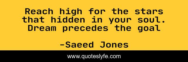 This page presents the quote "Reach high for the stars that hidden in your soul. Dream precedes the goal". Author of this quote is Saeed Jones. .