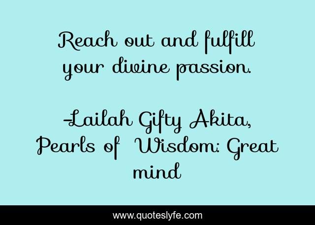 "Lailah Gifty Akita, Pearls of Wisdom: Great mind Quotes." Quoteslyfe.com, 2025. Sat. 06 Dec. 2025. <https://www.quoteslyfe.com/quote/Reach-out-and-fulfill-your-divine-passion-92906>.