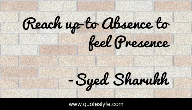 "Syed Sharukh Quotes." Quoteslyfe.com, 2025. Sat. 06 Dec. 2025. <https://www.quoteslyfe.com/quote/Reach-up-to-Absence-to-feel-Presence-253005>.