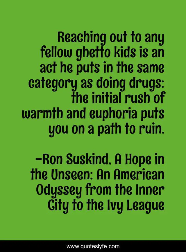"Ron Suskind, A Hope in the Unseen: An American Odyssey from the Inner City to the Ivy League Quotes." Quoteslyfe.com, 2025. Mon. 08 Dec. 2025. <https://www.quoteslyfe.com/quote/Reaching-out-to-any-fellow-ghetto-kids-188243>.