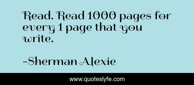 This page presents the quote "Read. Read 1000 pages for every 1 page that you write.". Author of this quote is Sherman Alexie. This quote is about enthusiasm, inspirational,.