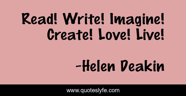This page presents the quote "Read! Write! Imagine! Create! Love! Live!". Author of this quote is Helen Deakin. This quote is about living, reading, writing,.
