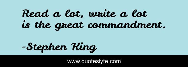 This page presents the quote "Read a lot, write a lot is the great commandment.". Author of this quote is Stephen King. This quote is about instruction-book, craft, memoir, on-writing,.