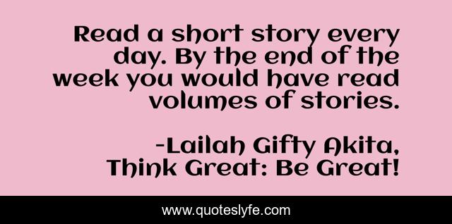 "Lailah Gifty Akita, Think Great: Be Great! Quotes." Quoteslyfe.com, 2025. Fri. 05 Dec. 2025. <https://www.quoteslyfe.com/quote/Read-a-short-story-every-day-By-34629>.