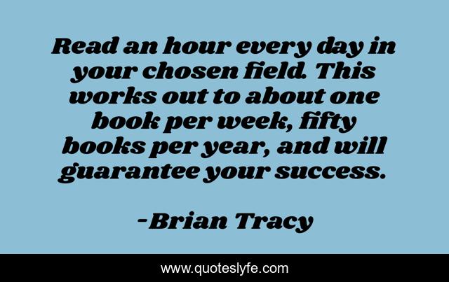 This page presents the quote "Read an hour every day in your chosen field. This works out to about one book per week, fifty books per year, and will guarantee your success.". Author of this quote is Brian Tracy. This quote is about business, enthusiasm, inspirational, success,.