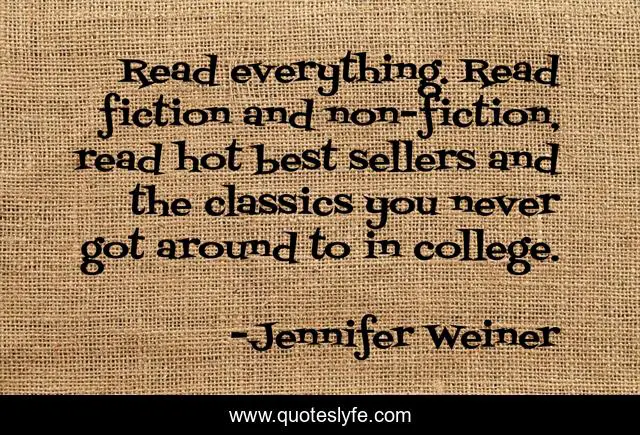 "Jennifer Weiner Quotes." Quoteslyfe.com, 2025. Mon. 08 Dec. 2025. <https://www.quoteslyfe.com/quote/Read-everything-Read-fiction-and-non-fiction-26994>.
