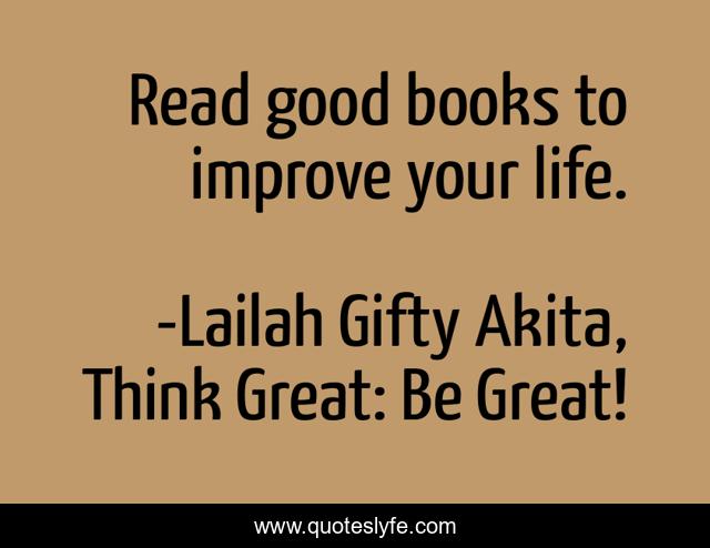 "Lailah Gifty Akita, Think Great: Be Great! Quotes." Quoteslyfe.com, 2025. Sat. 06 Dec. 2025. <https://www.quoteslyfe.com/quote/Read-good-books-to-improve-your-life-34618>.